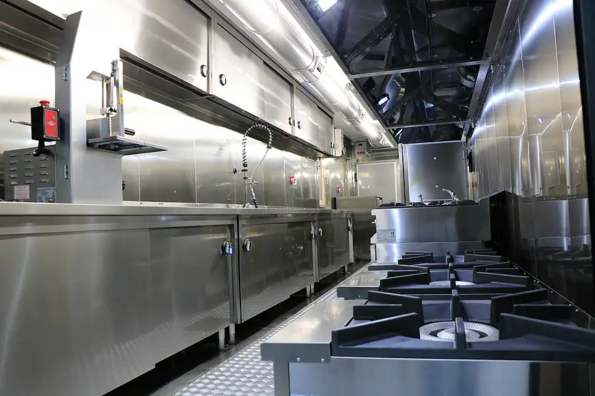 Diese tragbaren Küchen sind mit robusten und langlebigen Industrieküchengeräten ausgestattet. Die Kochgeräte, Öfen, Kühlschränke und Arbeitsflächen bestehen in der Regel aus Edelstahl und gewährleisten eine langlebige und hygienische Nutzung. Hochleistungsöfen, Herde und Kühlschränke bieten ideale Lösungen für die Versorgung großer Gruppen. Zudem ermöglichen moderne Technologien, die auf Energieeffizienz ausgelegt sind, den Unternehmen, Kosten zu senken und die Betriebseffizienz zu verbessern.